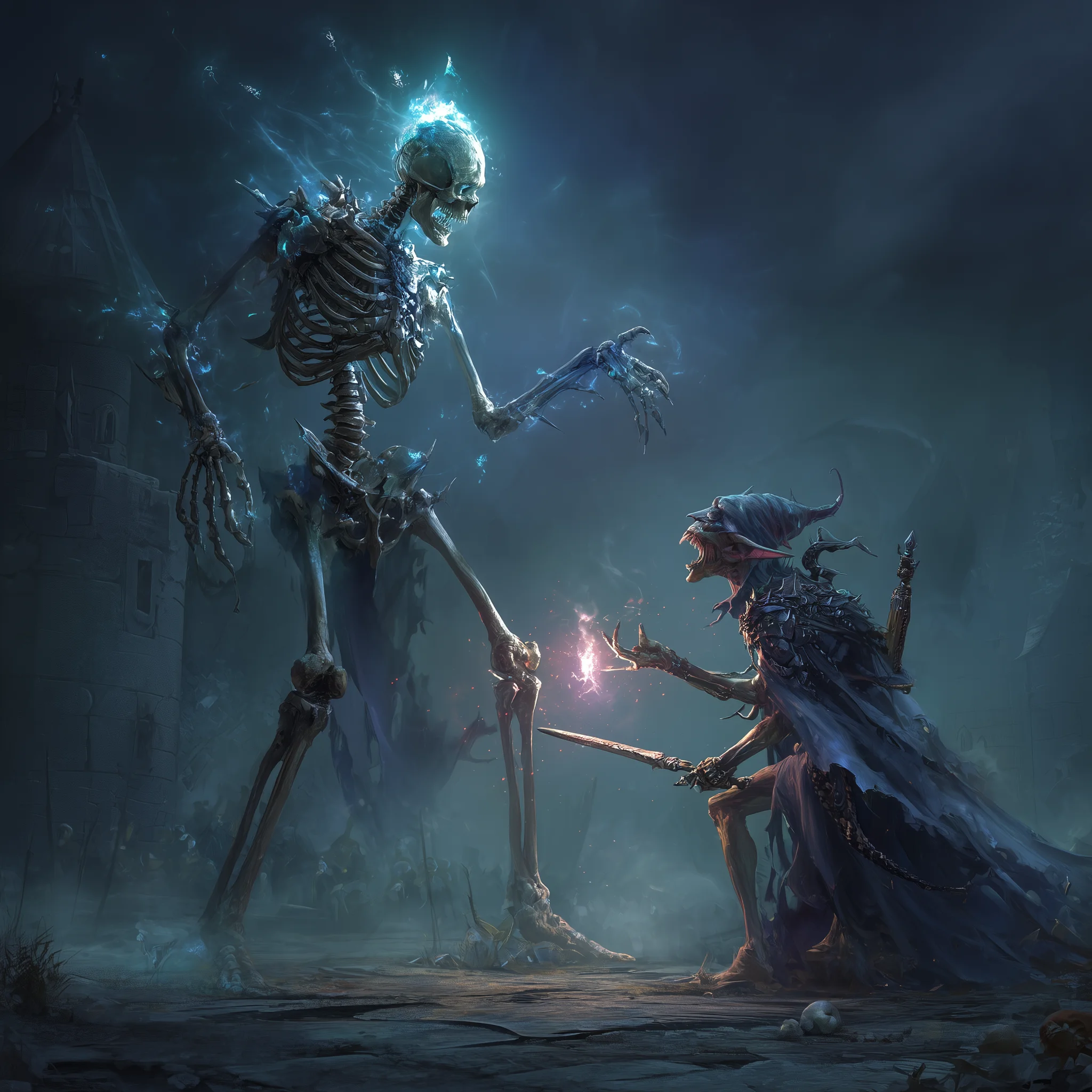 After the chaos of the previous session—where skeletal warriors had burst from concealment and Wyz’s own caltrops had become a treacherous obstacle course—the survivors found themselves scattered and desperate. The cunning goblin wizard’s plan to destroy the reforming skeleton had failed spectacularly, leaving him face-to-face with his undead nemesis as torchlight flickered and died around them.