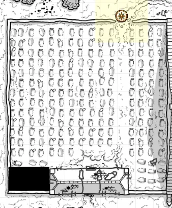 We explored the rest of the small series of rooms that seemed to hold discarded equipment. The four pouches held 400gp, which we did not yet divide up among us. One room had barding for a horse, and another 4 sets of plate mail, along with an assortment of weapons. There’s value in those rooms, if we can get it out safely. The most interestikng room was the last, which had visible (and audible) ghosts along with a bricked-up doorway north.