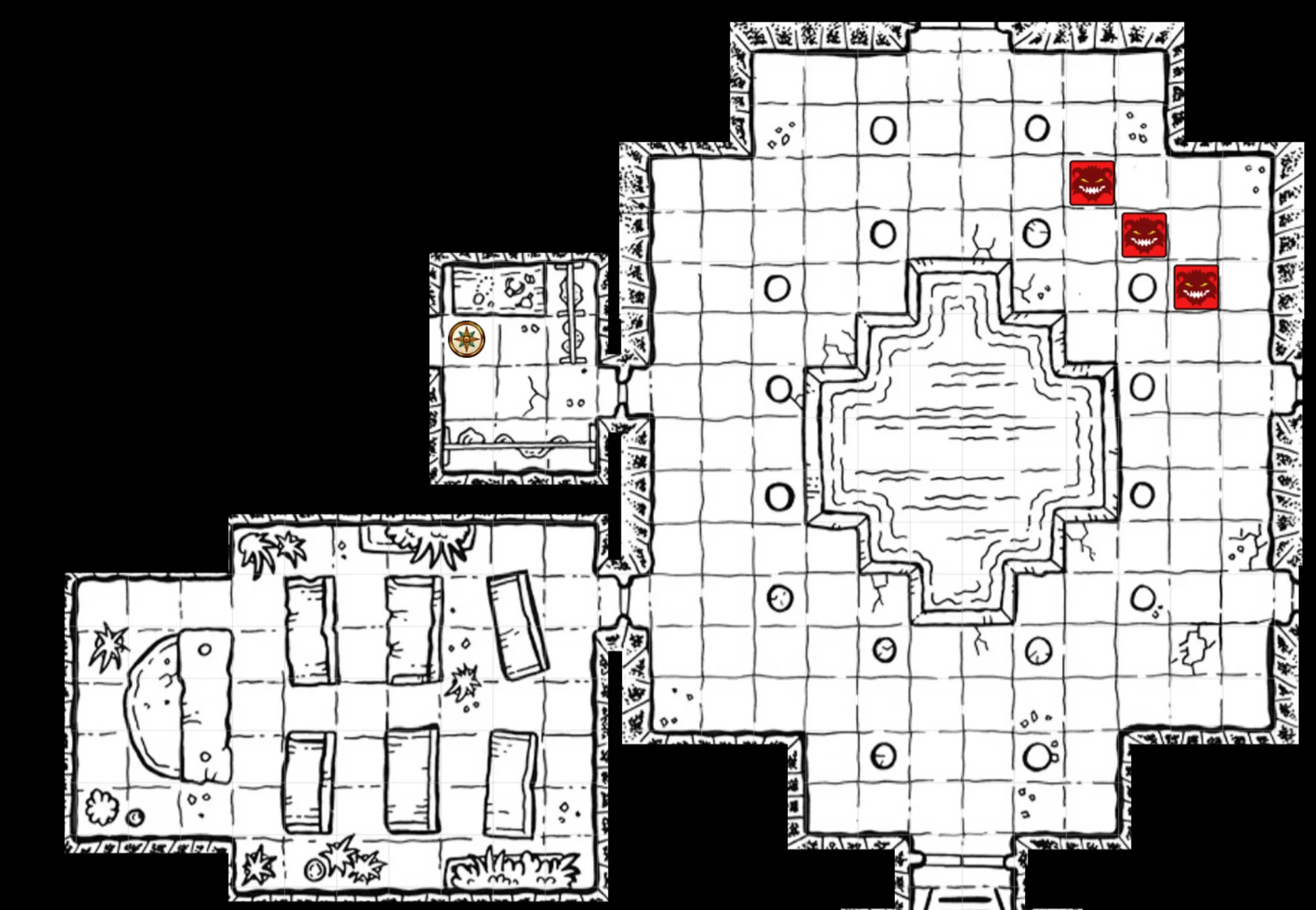 We had posted guards near the eastern entrance, and that turned out to be a good decision. They heard quite a lot of squeaking, enough to give us warning of an incoming rat swarm. With the door providing a natural funnel for the swarm, I thought quickly and poured oil there, and had one of our torchbearers set it alight. The rats diverted away from the fire, and we finished our search.