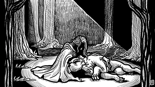 Thic Duc returned to the rest of the group after an hour or so, reporting that he had lost the Princess in a small town named Garrotten. After mourning their fallen companion and allowing Amathar and Warin time to arrange an orderly departure for the papers and the slaves respectively, the party proceeded to Garrotten and made inquiries at the town’s largest and best – and only – inn. The establishment had four rooms to let, and one already claimed; the party took the other three and inquired about a bath to clean off the sewage. Unfortunately, the bath had already been spoken for… all night, in fact.