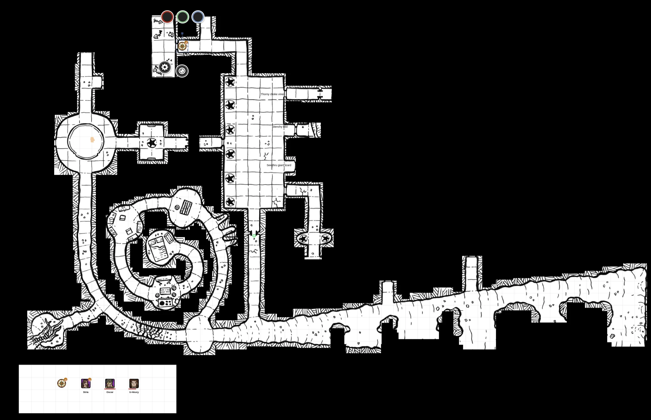 We argued for a little while about where to camp for the night, and eventually settled for a small room near the skeletons’ room. It had a few rat holes, so we blocked most of them and Ahnjela set up deadfalls at the rest.