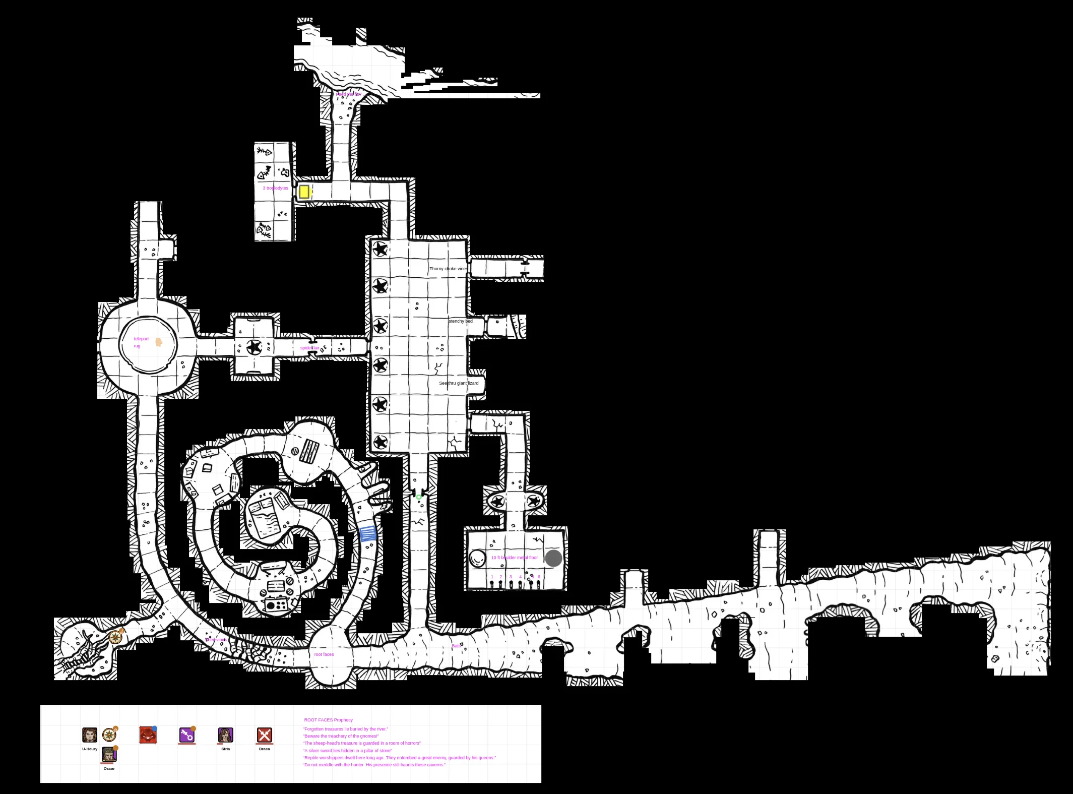 We left Ahnjela to guard the wagon with the mules and lumber outside the hole in the oak. The rest of us – briefly regretting that we had failed to hire a torchbearer or mercenaries – descended in the space below the tree.