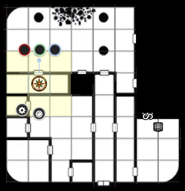 We chose to investigate the secret door in the back of the chamber. Turning the