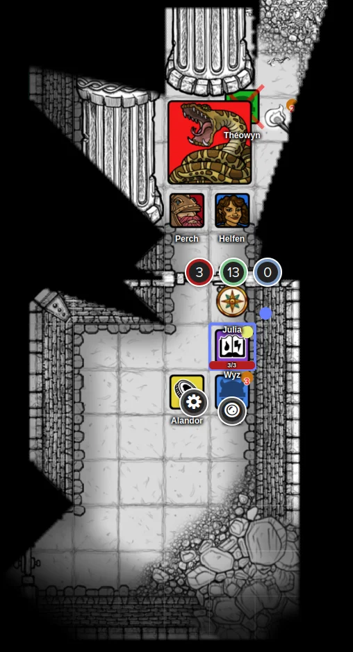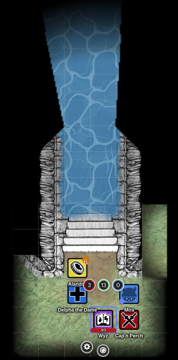 The party found themselves in yet another chamber of the accursed shadowmaze, their nerves already frayed from countless encounters with the dungeon’s malevolent inhabitants. Wyz, ever the cautious scout, pressed his pointed ear against the southeastern door, straining to catch any telltale sounds beyond. Meanwhile, his companions busied themselves searching the room for hidden treasures or traps, their movements creating a soft symphony of rustling gear and whispered observations.